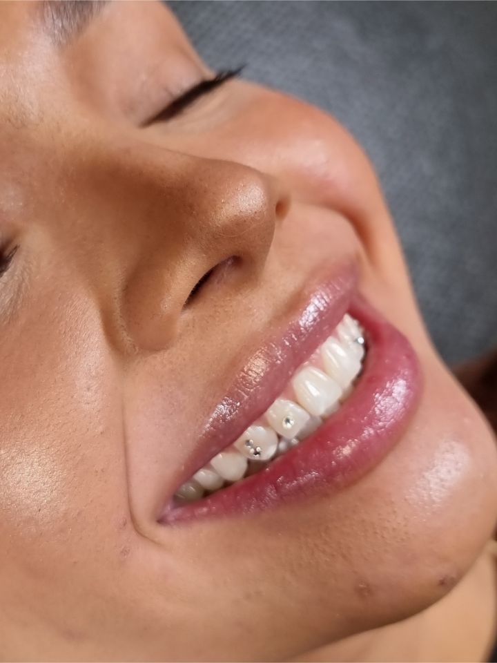 La smilet ditt skinne med vår unike tannsmykking! Velg mellom glitrende krystaller av høy kvalitet eller eksklusive smykker i 18k og 22k gull – og la oss hjelpe deg med å skape et design som virkelig reflekterer din stil.